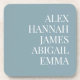 Create your own personalised coasters featuring family or kids names in elegant typography on blue colour background. Great gift idea for grandma featuring grandkids names.