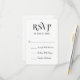A simple elegant design with chic black typography script. Personalise with your custom response date. Stylishly presents accepts, declines and number of guests text for the recipient.