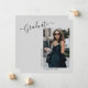 This elegant yet minimalist square, graduation announcement card, features design elements of modern text fused with calligraphy script on a silver grey kraft paper style print. The graduates photo is artfully placed on the front of the card while the back of the card offers personalised text spaces for information about the graduation and future journey. To see more items like this, visit my store here at "www.Zazzle.com/LakeViewCardCo". Thanks