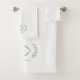 Modern Elegant Monogram Initial White Sage Green Bath Towel Set