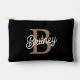 Modern Elegant Monogram Name Black Gold Script Accessory Pouch