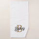 The Modern Elegant Monogram Name Black Gold Script Bath Towel Set combines luxury and personalisation in your bathroom. This set features a sleek black design adorned with sophisticated gold script, where you can add a custom monogram and name for a unique touch. Made from high-quality, plush cotton, the towels are both absorbent and soft, providing a comfortable and stylish experience. This set includes bath towels and hand towels, perfect for adding a touch of elegance and personalisation to your bathroom decor.
