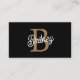 Modern Elegant Monogram Name Black Gold Script Business Card