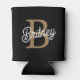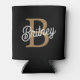 Modern Elegant Monogram Name Black Gold Script Can Cooler
