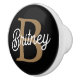 Modern Elegant Monogram Name Black Gold Script Ceramic Knob