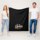 Modern Elegant Monogram Name Black Gold Script Fleece Blanket