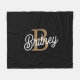Modern Elegant Monogram Name Black Gold Script Fleece Blanket