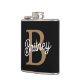 Modern Elegant Monogram Name Black Gold Script Hip Flask