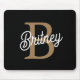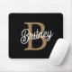 Modern Elegant Monogram Name Black Gold Script Mouse Mat