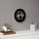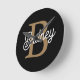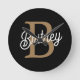 Modern Elegant Monogram Name Black Gold Script Round Clock