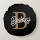 Modern Elegant Monogram Name Black Gold Script Round Cushion