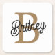 Modern Elegant Monogram Name Black Gold Script Square Paper Coaster