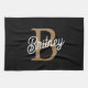 Modern Elegant Monogram Name Black Gold Script Tea Towel