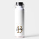 The Modern Elegant Monogram Name Black Gold Script Water Bottle features a chic black design complemented by luxurious gold script. Personalisation with a monogram and name adds a unique touch, making it both stylish and functional. Crafted from high-quality materials, it keeps beverages at the desired temperature while adding a sophisticated flair to your daily routine. This water bottle is perfect for personal use or as a thoughtful gift for someone who values elegance and practicality.