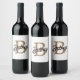 Modern Elegant Monogram Name Black Gold Script Wine Label