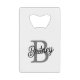 The Modern Elegant Monogram Name Black Grey Script Credit Card Bottle Opener combines practicality with a touch of personalised sophistication. Featuring a sleek black design with grey script, this bottle opener is customised with an elegant monogram and name, making it both a stylish and functional accessory. Compact and convenient, it fits easily in your wallet like a credit card, ensuring you’re always prepared to open bottles while showcasing your unique style. Perfect as a thoughtful gift or a chic personal accessory, it blends elegance with everyday functionality. If you have specific design preferences or need help with customisation, just let me know!