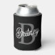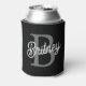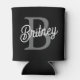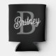 Modern Elegant Monogram Name Black Grey Script Can Cooler