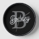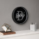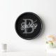Modern Elegant Monogram Name Black Grey Script Clock