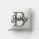 Modern Elegant Monogram Name Black Grey Script Cushion