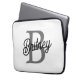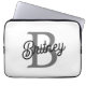 Modern Elegant Monogram Name Black Grey Script Laptop Sleeve