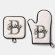 Modern Elegant Monogram Name Black Grey Script Oven Mitt & Pot Holder Set
