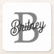 Modern Elegant Monogram Name Black Grey Script Square Paper Coaster