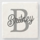 Modern Elegant Monogram Name Black Grey Script Stone Coaster