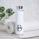 Modern Elegant Monogram Name Black Grey Script Water Bottle