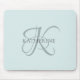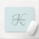 Modern Elegant Monogram Script Aqua Blue Mouse Mat