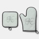 Modern Elegant Monogram Script Aqua Blue Oven Mitt & Pot Holder Set