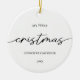 Stylish and trendy, this Modern Elegant My First Christmas Baby Minimal Ceramic ornament is a unique and personalised keepsake that will add a touch of elegance to your Christmas decor. This black and white Xmas adornment is the perfect way to celebrate your baby's first Christmas and capture this festive milestone. Crafted with a modern and minimal design, it stands out as a chic and stylish Christmas gift for your friends and family. Its timeless black and white design and customisable personalisation make it a one-of-a-kind treasure that you'll cherish for years to come. Whether you hang it on your tree or use it as a stylish gift tag, this personalised holiday ornament will make your festive season extra special!