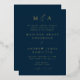 Celebrate your wedding with this minimalist modern invitation showcasing your monogram initials and wedding details in elegant gold foil lettering. Beautiful calligraphy script accents add a timeless, romantic touch. The rich navy background is fully customisable—choose any colour to perfectly match your wedding palette. Ideal for couples who appreciate sleek and sophisticated style, this invitation offers a chic and personalised way to invite your guests. Personalise yours today!