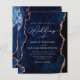 navy and rose gold wedding theme design with elegant black script calligraphy lettering. The text and other features of this wedding invite template can be customised.
