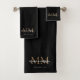 Modern Elegant Newlywed Black Gold Monogram Name Bath Towel Set