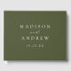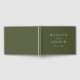 Elegant wedding guestbook featuring your names and wedding date in white lettering with an olive green background. Personalise the spine of the simple wedding guest book with your married name and wedding date.