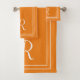Modern Elegant Orange & White Monogram Bath Towel Set