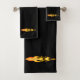 Modern Elegant Orange Yellow Fire Flame on Black Bath Towel Set