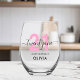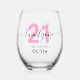 Modern Elegant Pink 21st Birthday Stemless Wine Glass
