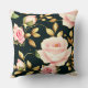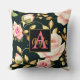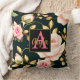 Modern Elegant Pink Roses Gold Leaves Monogram Cushion