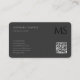 Modern Elegant Simple Design Custom Text Monogram Initial QR Code Template Black / Dark Grey / White Signature Matte Business Cards. Perfect for Real Estate Agents, Accountants, Realtors, Brokers, Attorneys, Lawyers, Doctors, Corporate Professionals, Stylists, Architects, Engineers, Directors, Managers, Consultants, Designers, Teachers, Musicians, all professions.