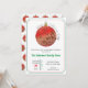 Modern Elegant Red Christmas Doodle Ornament Invitation, features differant christmas doodles details using christmas palette colours, with handwritten retro text on the bove of the ornament.