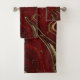 Modern Elegant Red & Gold Marble Swirl Bath Towel Set