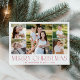 Modern Elegant Red Merry Christmas Photo Collage Holiday Card