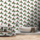 Modern Elegant Red Roses & Green Holly Pattern Wallpaper