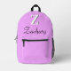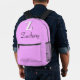A personalised monogram backpack designed in a modern elegant style. This elegant Rich Brilliant Lavender backpack features a bold white initial 'Z' with a black shadow and a customisable name in black script font. Perfect for adding a touch of sophistication and personalisation to your everyday style. Ideal for school, work, or casual outings, this backpack combines functionality with a chic design that stands out.