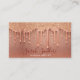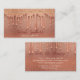 This chic and contemporary business card features a stylish rose gold and blush pink dripping design. Ideal for female entrepreneurs, consultants, business owners, and makeup artists, it allows you to personalise your name, title, and contact information. The name is displayed in a trendy, hand-lettered script for a modern touch. Click the "customise further" link to use the design tool and tailor the template to your specific needs. Perfect for adding a touch of elegance and sophistication to your professional branding.