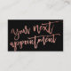 Modern elegant rose gold script typography black with your next appointment written in a modern and stylish script calligraphy. Perfect for beauty salon, hair stylist and makeup artists.