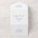 Modern Elegant Royal Blue Wedding All in One Invitation is a unique tri-fold invite option that is self-enclosed, sealed, mailed to guests with a detachable RSVP postcard; no need for envelopes! Design features an engagement photo of the couple with modern calligraphy script accents and classic typography. The guest address can be included on the back side - printed or handwritten, along with the postage for mailing. The back flap includes custom return address text, and the RSVP postcard includes the return address on the back so it can be torn off with help of a perforated fold and mailed back without an envelope.
