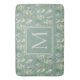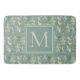 Beautiful, elegant, and modern botanical bath mat with your monogram/initial on a background of sage green and silver leaves and foliage.
