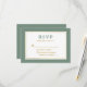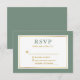 Modern Elegant Minimalist Sage Green and White Wedding RSVP card. Gold Frame.
